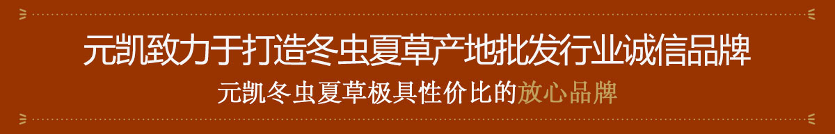 公司專業致力于青藏高原野生冬蟲夏草銷售、采收、精選包裝和現代化生產、研發等,并且在青海玉樹西藏那曲設立了采購站,專門采購地道的野生冬蟲夏草,充分保證了產品的品質。元凱長期向國內眾多著名藥材經銷商、港澳臺以及東南亞中藥材采購商供應冬蟲夏草,多次被省、市、縣授予多種榮譽稱號“青海省知名商標”、“青海省誠信單位”、“青海省名優企業”、“守合同重信用企業”等。